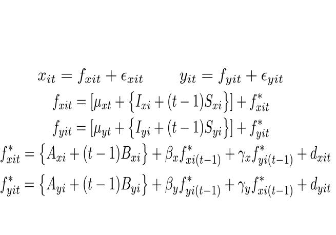 (i)ランダムに生じる時点特有の効果(time-specific effect)の影響を考慮したモデリング、(ii)縦断データに見られる多様な変化の背後にある、